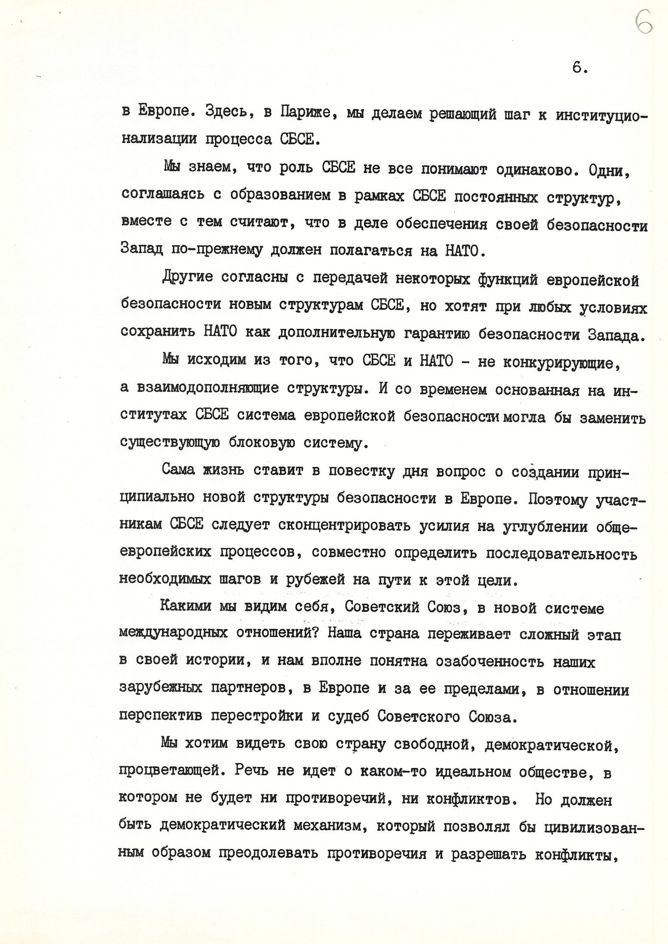 Другой примечательный документ — проект текста выступления Михаила Горбачева при подписании Парижской хартии.
