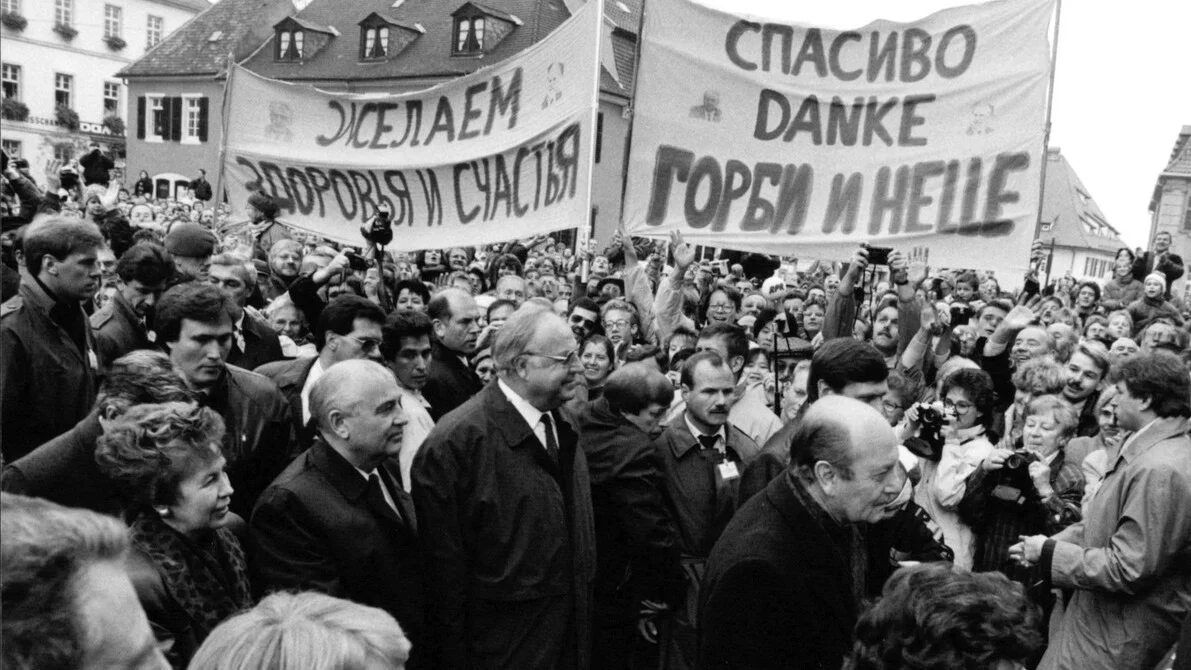 Михаил Горбачев и канцлер ФРГ Гельмут Коль в западногерманском городе Шпайер. В 1989 и 1990 годах восторженные толпы встречали советского лидера как в ФРГ, так и в ГДР. Фото: Getty Images